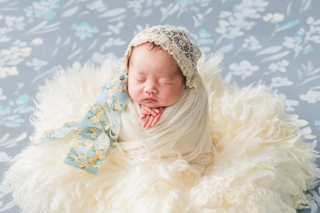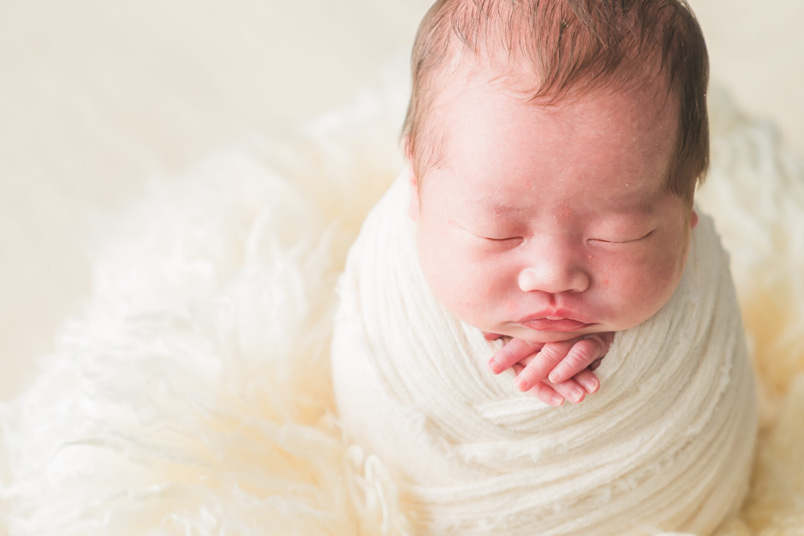 産まれたばかりの赤ちゃんを神秘的に撮影※おくるみを巻いての撮影となります
