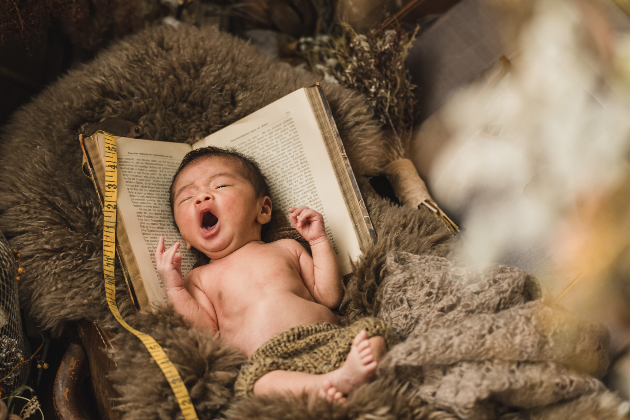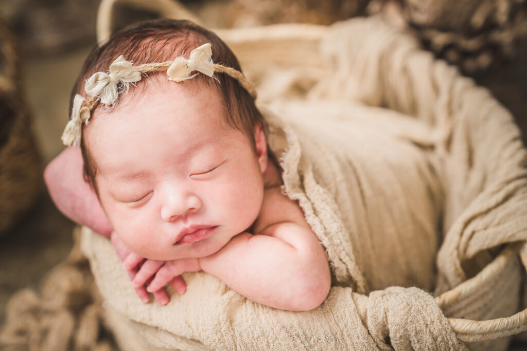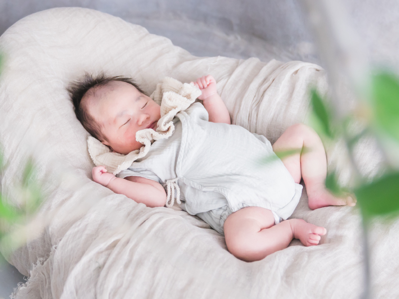 生後間もない時期の赤ちゃんは眠っていることが多く、自然な形でポーズを作ることが出来るため